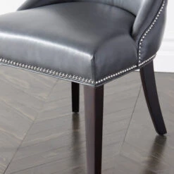 Featuring diamond shaped button tufting around the back, our Versailles chair elevate the style of any room. Shown in Cortina Leather Charcoal with bright nickel nailheads.