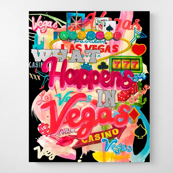 What Happens In Vegas is a gallery-wrapped canvas with hand-applied image brush gel finish.