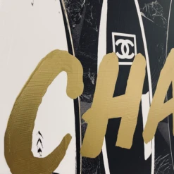 - Hand-stretched giclée print on canvas with handpainted gold lettering and finished with a glossy gel coat.