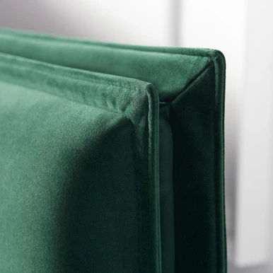 Framed in sturdy kiln-dried hardwood, our Wren platform bed makes a stunning focal point in the bedroom with its modern, clean-lined headboard finished with elegant double-flange edges. Shown in Royale Plush Velvet Evergreen.